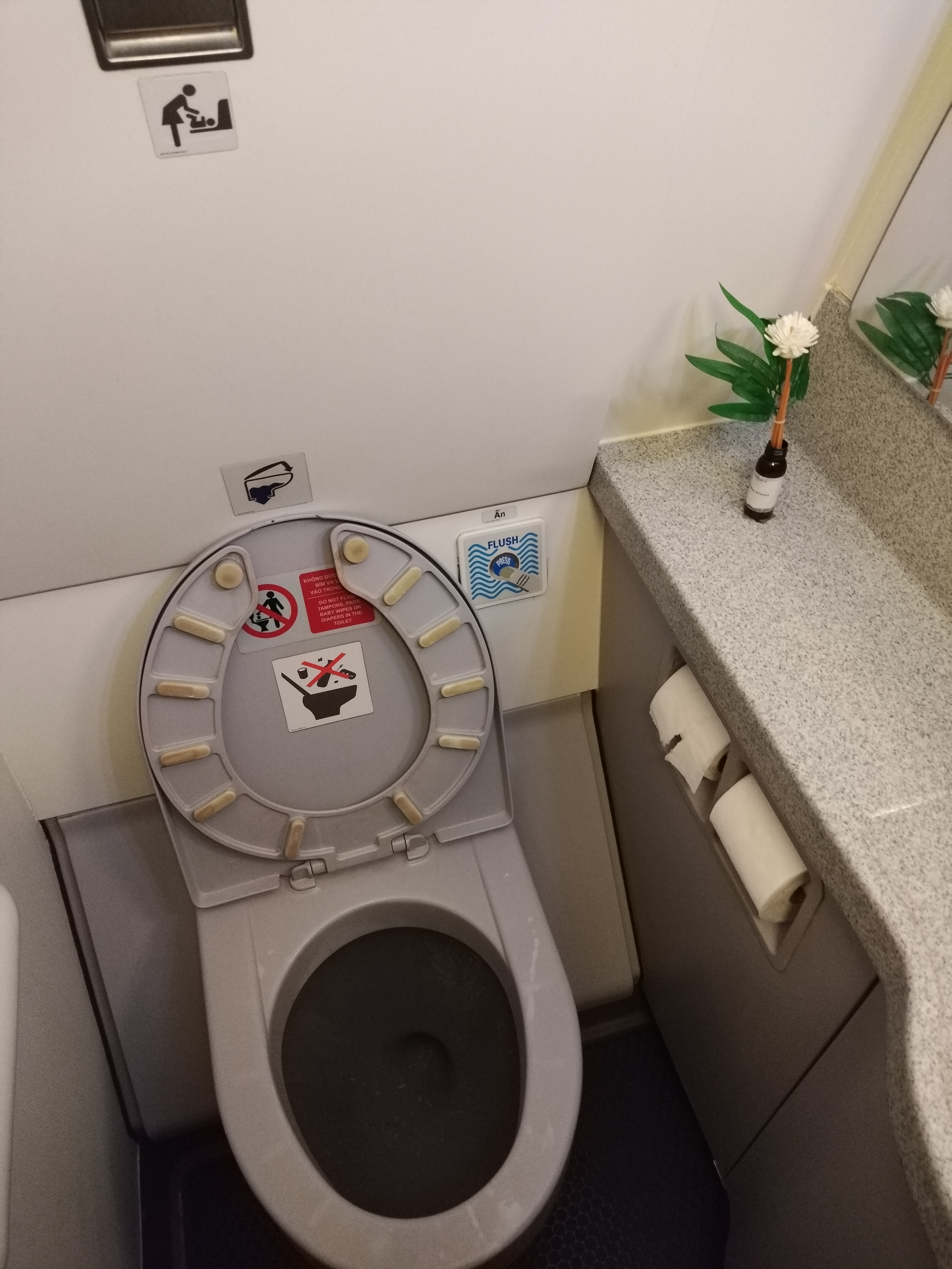 登機後來到了期待已久的逃生門……前方位置,說好的逃生門位呢?而且逃生門前一排椅背還不能放倒,椅距(體感)也稍窄。初華……地勤就只會騙人。(話說出發當週剛好是母雞卡精彩且金句連發的炸團第四集)